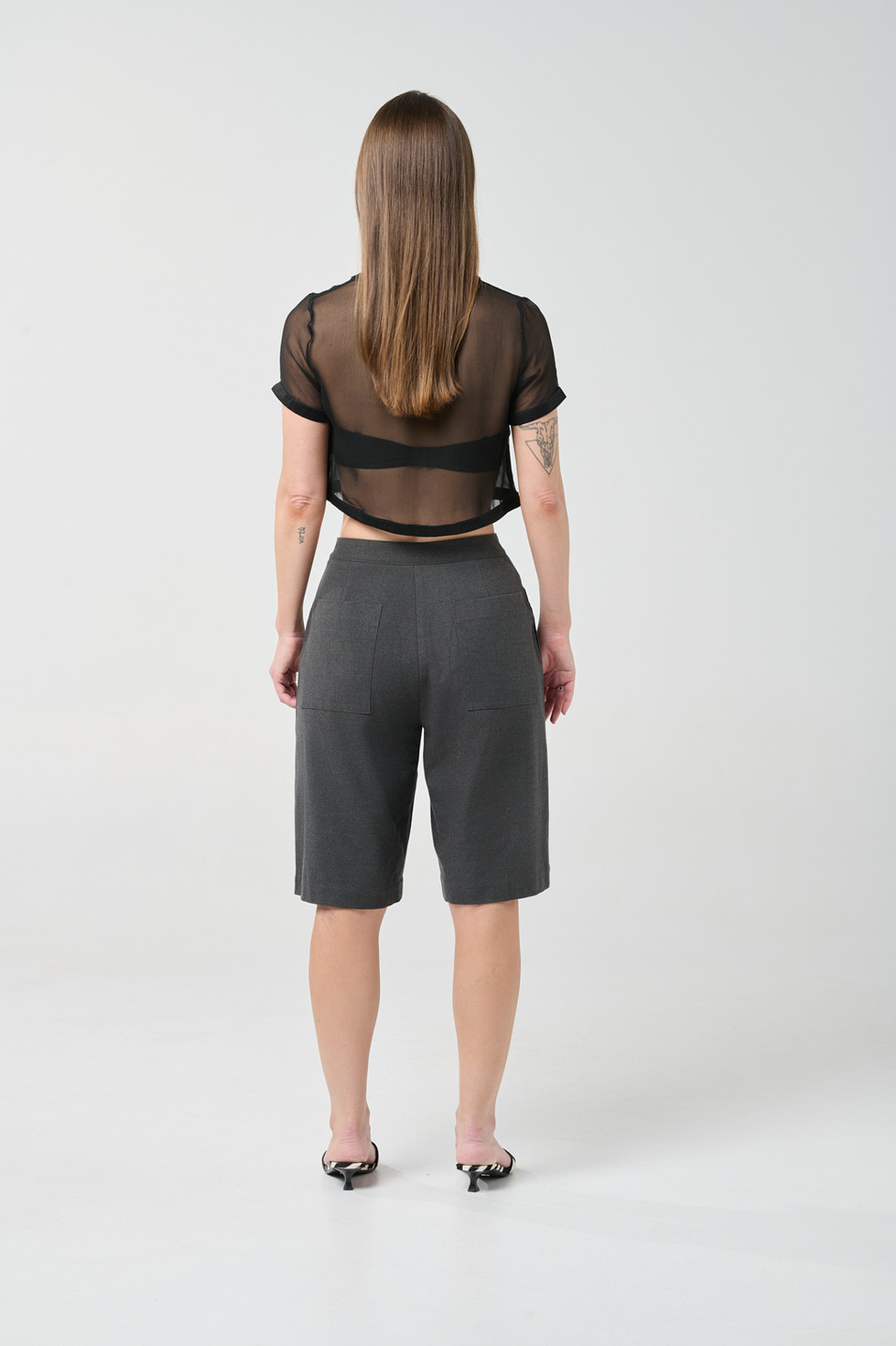 The Artist Short is crafted from a soft wool blend and offers a refined, feminine interpretation of the classic Bermuda silhouette. A gracefully curved waistband and triple pleated, wide-leg design create a sculpted and voluminous shape.